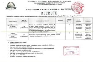 أكمل القراءة »اعلان عن توظيف بجامعة امحمد بوقرة بومرداس