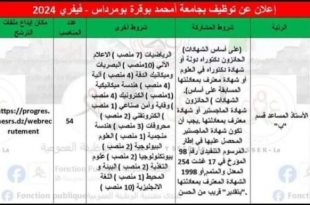 أكمل القراءة »اعلان عن توظيف بجامعة امحمد بوقرة بومرداس 54 منصب