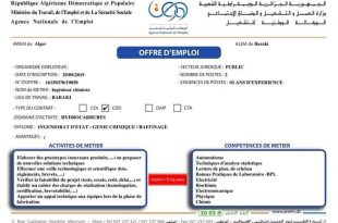تعلن الوكالة الوطنية للنفايات Agence Nationale des Déchets عن فتح باب التوظيف لصالح محققين Enquêteurs في الولايات التالية وهران تلمسان برج بوعريريج المدية البويرة بومرداس سطيف تبسة تيارت باتنة سعيدة ورقلة ايليزي يتم التوظيف لمدة شهر خلال كل فصل ( صيف، شتاء، خريف، ربيع)، …