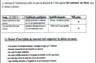 تعلن المؤسسة العمومية للصحة الجوارية ولاية البليدة بلدية الاربعاء عن توظيف على أساس الشهادات في الرتب المدرجة في الصور أدناه يمكنك زيارة مجموعة التوظيف من هنا لتكون اول من يتوصل بجديد الوظائف لا تنسى الاشتراك في قائمتنا البريدية [mc4wp_form id=”19″]