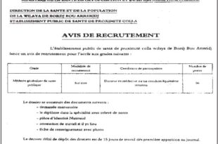 أكمل القراءة »اعلان توظيف بالمؤسسة العمومية للصحة الجوارية القلة برج بوعريريج