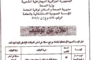 اعلان عن توظيف بالمؤسسة العمومية الاستشفائية البيض