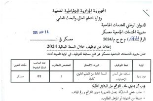 أكمل القراءة »اعلان عن توظيف بمديرية الخدمات الجامعية لولاية معسكر