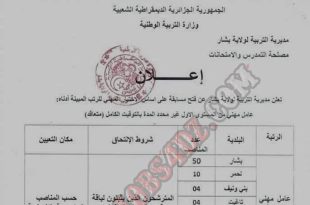 اعلان عن توظيف بمديرية التربية لولاية بشار