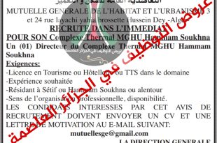 اعلان عن توظيف التعاضدية العامة للسكن و التعمير التعاضدية العامة للسكن و التعمير توظف على الفور لصالح مركبها المعدني حمام السخنة بولاية سطيف : ✓ مدير المركب ads تلغرام مسابقات التوظيف مسابقات التوظيف أكتوبر 2025 مسابقات التوظيف 2025 اعلانات التوظيف حسب الولايات اعلانات التوظيف …