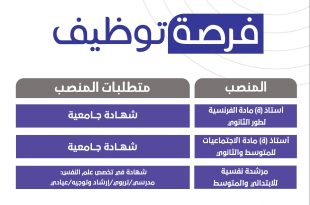 فرصة للتوظيف مؤسسة المنار للتربية والتعليم ads تعلن مؤسسة المنار للتربية والتعليم عن فتح باب الترشح في المناصب التالية استاذ مادة فرنسية الطور الثانوياستاذ مادة الاجتماعيات متوسط وثانويمرشدة نفسية للابتدائي والمتوسط للتسجيل يرجى ارسال السيرة الذاتية الى البريد الالكتروني المدرج في الصورة تلغرام مسابقات …