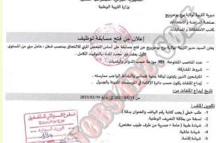 اعلان عن توظيف مديرية التربية لولاية برج بوعريريج ads تعلن مديرية التربية لولاية برج بوعريريج عن فتح مسابقة توظيف على اساس الفحص المهني في الرتب المبينة ادناه عامل مهني من المستوى الاول عدد المناصب 183 منصب نمط التوظيف مسابقة على اساس الفحص المهني عامل …