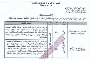 أكمل القراءة »اعلان عن توظيف بمديرية التربية لولاية سيدي بلعباس (116 منصب)