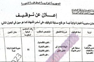 أكمل القراءة »اعلان عن توظيف بمديرية التجارة لولاية تبسة