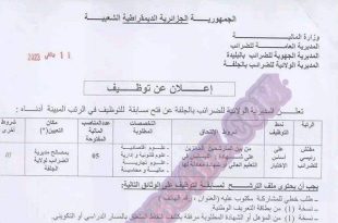 أكمل القراءة »اعلان عن توظيف بالمديرية الولائية للضرائب لولاية الجلفة