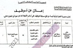 اعلان عن توظيف بمديرية التجارة لولاية تبسة