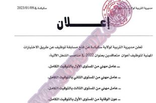 اعلان عن توظيف مديرية التربية لولاية سكيكدة ads تعلن مديرية التربية لولاية سكيكدة عن فتح مسابقة توظيف عن طريق الاختبار المهني في الرتب المبينة ادناه عامل مهني من المستوى الاول بالتوقيت الكامل عدد المناصب 46 منصب نمط التوظيف عن طريق الاختبار المهني عامل مهني …