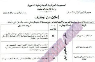اعلان عن توظيف بمديرية التربية لولاية تلمسان (251 منصب)