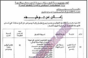 اعلان عن توظيف بمدرسة الاطفال المعوقين بصريا ببرج منايل بومرداس