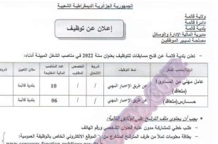 أكمل القراءة »اعلان عن توظيف بمديرية الشؤون الدينية والاوقاف لولاية مستغانم