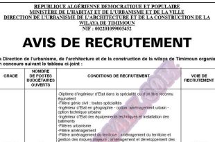 اعلان توظيف بمديرية التعمير والهندسة المعمارية والبناء تيميمون