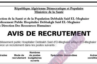 اعلان توظيف بالمؤسسة العمومية الاستشفائية دباخ السعيد بالمغير