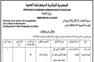 أكمل القراءة »اعلان توظيف بالمؤسسة العمومية الاستشفائية بدلس ولاية بومرداس