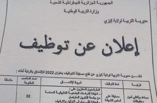 أكمل القراءة »اعلان توظيف بمديرية التربية لولاية ايليزي