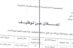 أكمل القراءة »اعلان عن توظيف بمديرية السكن لولاية بني عباس