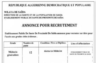 أكمل القراءة »اعلان توظيف بالمؤسسة العمومية للصحة الجوارية بسعيدة