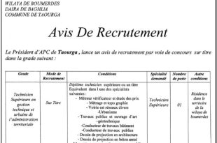 أكمل القراءة »اعلان عن توظيف ببلدية تاورقة بولاية بومرداس