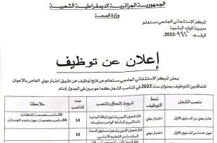 اعلان عن توظيف بالمركز الاستشفائي الجامعي لولاية مستغانم