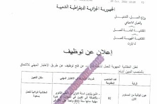 اعلان عن توظيف المفتشية الجهوية للعمل لناحية تيارت ads تعلن المفتشية الجهوية للعمل لناحية تيارت عن فتح توظيف على اساس الاختبار المهني في الرتب المبينة ادناه عون وقاية من المستوى الاول عدد المناصب 01 نمط التوظيف على مسابقة على اساس الاختبار المهني ملف مسابقة …