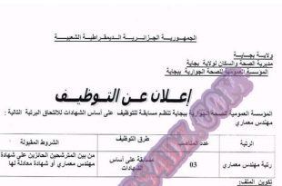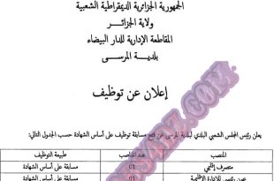 أكمل القراءة »اعلان عن توظيف ببمقر بلدية المرسى (Jean Bart) بالجزائر العاصمة