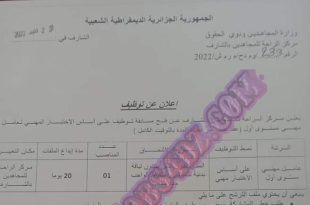 أكمل القراءة »اعلان توظيف بمركز الراحة للمجاهدين بالشارف لولاية الجلفة