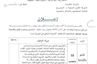 أكمل القراءة »اعلان عن توظيف في 19 منصب قائم بالإمامة