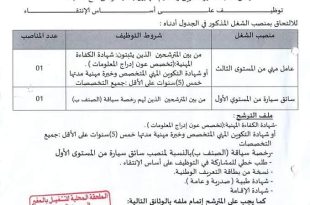 اعلان عن توظيف مديرية التكوين والتعليم المهنيين بالمغير ads تعلن مديرية التكوين والتعليم المهنيين بالمغير عن فتح مسابقة توظيف عن طريق الانتقاء في الرتب المبينة ادناه عامل مهني من المستوى الثالث عدد المناصب 01 نمط التوظيف على اساس الانتقاء سائق سيارة من المستوى الاول …
