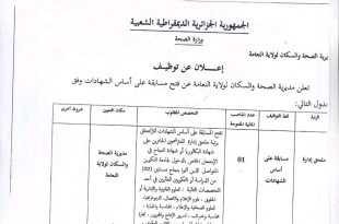 إعلان عن توظيف بمديرية الصحة والسكان لولاية النعامة