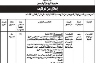 إعلان عن توظيف في مديرية الري لولاية جيجل