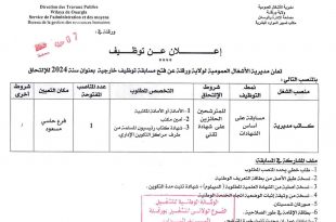 وزارة الأشغال العمومية و المنشآت القاعدية مديرية الأشغال العمومية ولاية ورقلة مصلحة الموارد البشرية ads ورقلة في: 07 جويلية 2025 إعلان عن توظيف تعلن مديرية الأشغال العمومية لولاية ورقلة عن فتح مسابقة توظيف خارجية بعنوان سنة 2024 للإلتحاق بالمنصب التالي: المنصب الشاغلشروط التوظيفشروط الإلتحاقالتخصص …