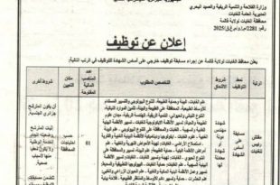 إعلان عن توظيف لمناصب اساتذة في الطورين المتوسط والثانوي وفي الادارة