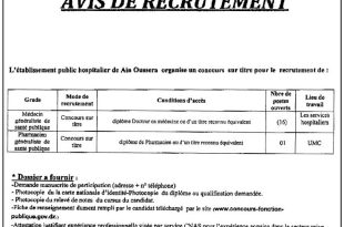 أكمل القراءة »اعلان توظيف بالمؤسسة العمومية للصحة الجوارية عزازقة تيزي وزو