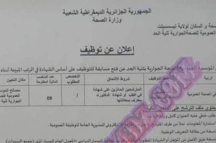 اعلان توظيف بالمؤسسة العمومية للصحة الجوارية بالجلفة