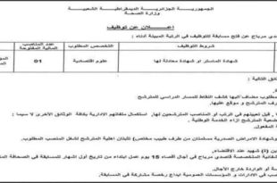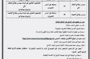 اعلان عن توظيف الديوان الوطني للخدمات الجامعية (الديوان المقر) ads يعلن الديوان الوطني للخدمات الجامعية (الديوان المقر) عن فتح مسابقات توظيف على أساس الشهادة للإلتحاق بالرتب المبية أدناه : -رئيس المهندسين في الإحصائيات (شهادة الدكتوراه) – مهندس رئيسي في الإعلام الآلي(شهادة الماجيستر ) -مهندس …