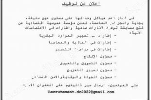 أكمل القراءة »مؤسسة عمومية إقتصادية توظف لإطارات سامية و إطارات بالجزائر العاصمة بجاية عين مليلة