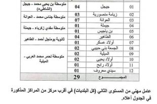 تعلن مديرية التربية لولاية جيجل عن فتح مسابقات لتوظيف الاعوان المتعاقدين على اساس الاختبار المهني في المناصب المبينة ادناه ads عامل مهني مستوى اول بالتوقيت الكامل عدد المناصب 29 نمط التوظيف على اساس الاختبار المهني عامل مهني من المستوى الثاني عدد المناصب 05 نمط …
