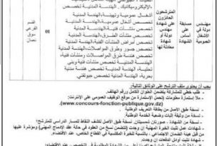 تعلن مديرية الاشغال العمومية لولاية ام البواقي عن فتح توظيف على اساس الشهادات في الرتب المبينة ادناه ads مهندس دولة في الاشغال العمومية عدد المناصب 01 نمط التوظيف مسابقة على اساس الشهادة تاريخ نشر الاعلان : 22 ديسمبر 2021 اخر اجل لايداع الملفات 15 …