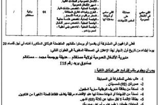تعلن مديرية الاشغال العمومية لولاية مستغانم عن فتح توظيف على اساس الشهادات في الرتب المبينة ادناه ads تقني سامي في الاشغال العمومية عدد المناصب 01 نمط التوظيف مسابقة على اساس الشهادة تاريخ نشر الاعلان : 05 ديسمبر 2021 اخر اجل لايداع الملفات 15 يوم …