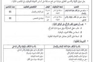 يعلن ديوان الترقية والتسيير العقاري بولاية غرداية عن فتح مسابقة على اساس الشهادة للتوظيف في المناصب التالية ads مساعد مدير عام مكلف بخلية الاعلام والاتصال نمط التوظيف مسابقة على اساس الشهادة عدد المناصب 01 مساعد مدير عام مكلف بالوقاية والامن الداخلي نمط التوظيف مسابقة …