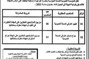 تعلن المؤسسة العمومية للصخة الجوارية بمقرة المسيلة عن فتح مسابقات للتوظيف في الرتب التالية ads طبيب عام في الصحة العمومية عدد المناصب 06 نمط التوظيف مسابقة على اساس الشهادة جراح اسنان عام في الصحة العمومية عدد المناصب 03 نمط التوظيف مسابقة على اساس الشهادة …