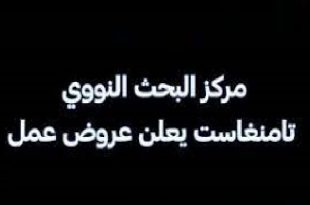 الوكالة الولائية للتشغيل تمنراستمحافظة الطاقة الذريةمركز البحث النووي تمنراست يعلن عن عروض عمل ،التخصصات :✓ليسانس او ماستر الفيزياء✓ليسانس او ماستر كيمياء✓لبسانس او ماستر الجيولوجيا✓ليسانس او ماستر الجيوفيزياء✓ليسانس او ماستر هندسة كهربائية✓ليسانس او ماستر هندسة طرقات✓ليسانس او ماستر علم البيئة ads