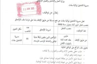 أكمل القراءة »إعلان عن توظيف في مديرية التشغيل لولاية جانت