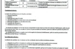 اعلان توظيف بالمؤسسة العمومية للصحة الجوارية وادي تليلات وهران