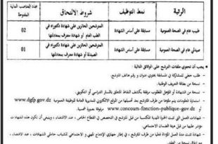 تعلن ادارة المؤسسة العمومية الاستشفائية عشعاشة عن فتح مسابقة على اساس الشهادة للتوظيف في الرتب المبينة ادناه ads طبيب عام في الصحة العمومية نمط التوظيف مسابقة على اساس الشهادة عدد المناصب 02 صيدلي عام في الصحة العمومية نمط التوظيف مسابقة على اساس الشهادة عدد …