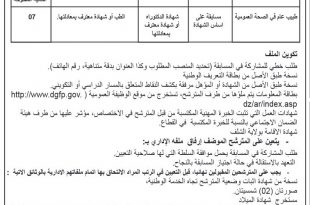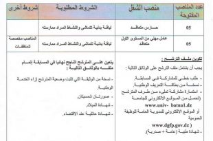تعلن المؤسسة العمومية للصحة الجوارية اولاد فارس الشلف عن فتح مسابقات للتوظيف في الرتب المبينة ادناه ads طبيب عام في الصحة العمومية نمط التوظيف مسابقة على اساس الشهادة عدد المناصب 07 تاريخ نشر الاعلان : 05 سبتمبر 2021 اخر اجل لايداع الملفات 15 يوم …